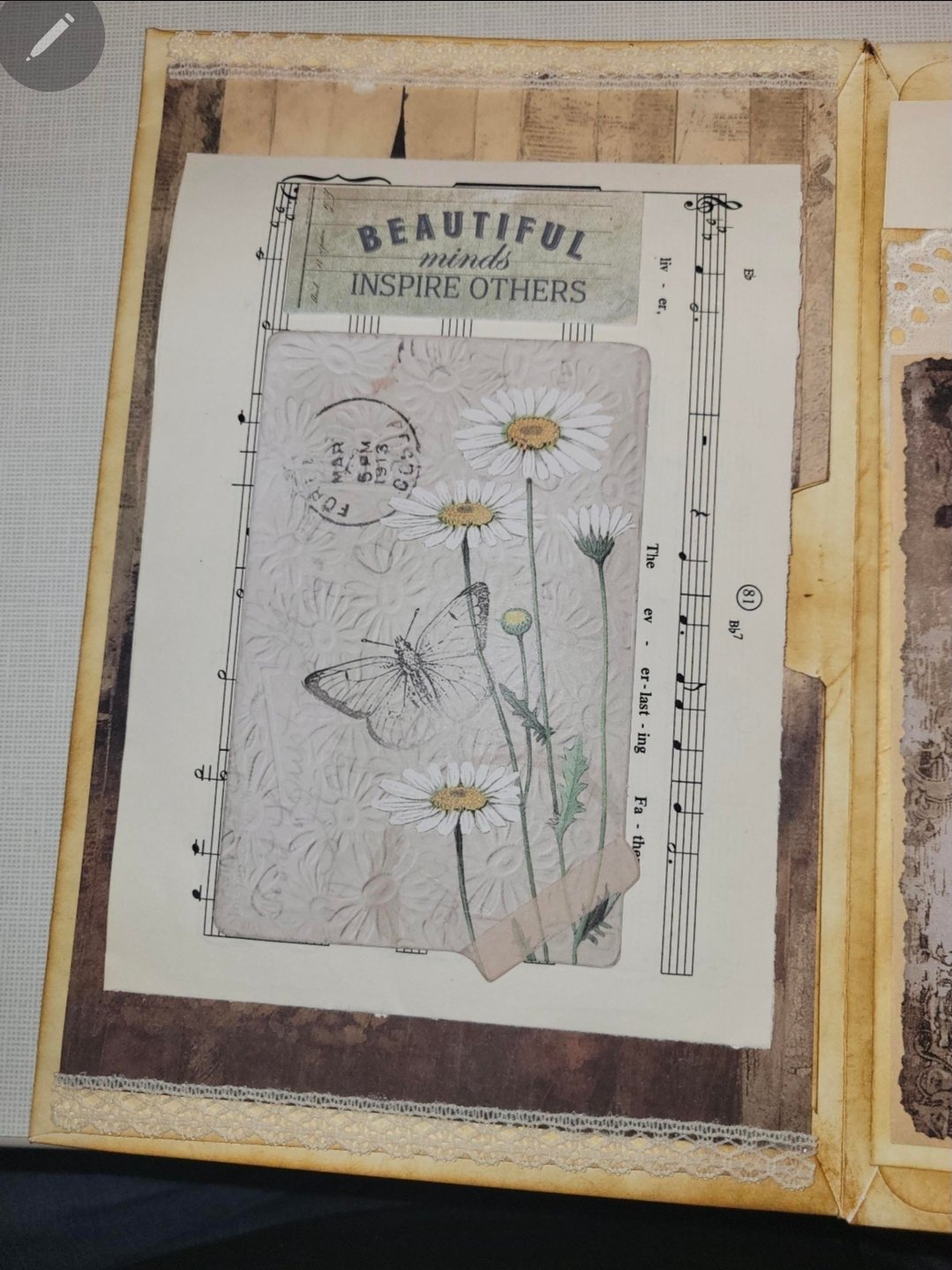 This inspirational Churches booklet will be a new favorite. It was created from large envelopes so every spread has ample space to tuck away photos, notes, or small keepsakes. This booklet is the perfect size to slip into your handbag. The Churches booklet is distressed with Vintage Photo Distress Oxide and lovingly embellished with lace, pearls, and rhinestones, and closes with lace trim. Each pocket has ephemera with an uplifting quote.