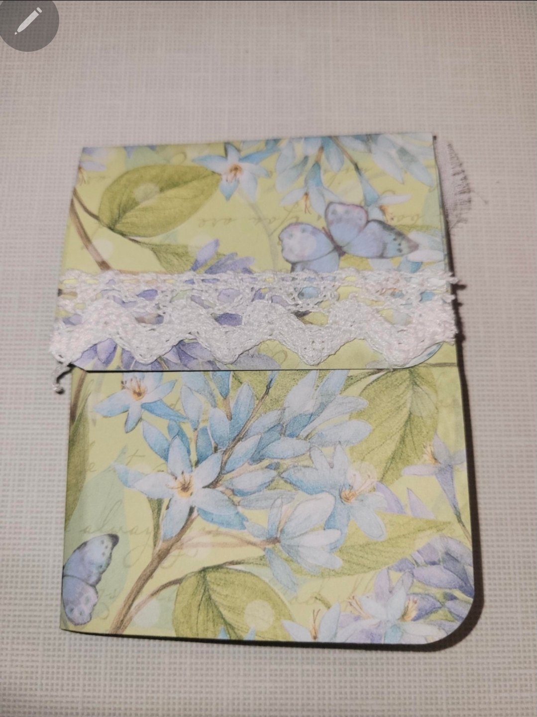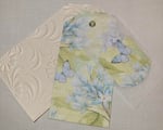 The Spring Folio is perfect for this time of year. It includes two deep pockets so there's plenty of storage space. The inside pocket holds an 8-page booklet with plenty of space for writing down notes or journaling. It also holds a cute folding mini-folio with 2 tuck spots. The back pocket holds a slender tag and an amazing stacked tag made with embossed paper, coordinating paper, and vellum.